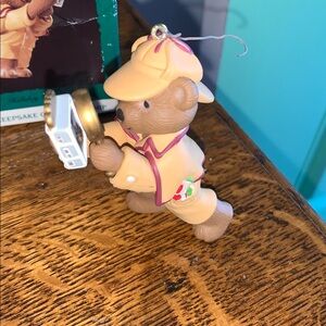 This ornament features a bear dressed as a detective