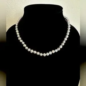 This elegant silver pearl necklace adds a touch of sophistication to any outfit. Perfect for both casual and formal occasions.