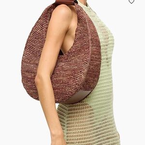 STAUD Large Mahogany Brown Raffia Shoulder Bag NWT