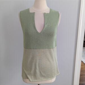 Women's Akris Green White Blouse Silk US 16 Vneck Sleeveless