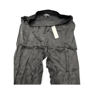 Women elastic waist silk pants size M black