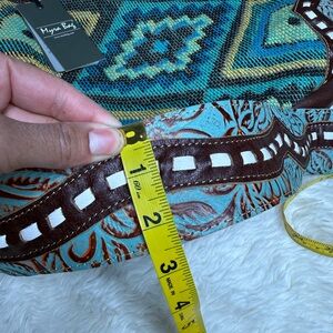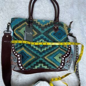NWT Myra Curation Tote Bag Cotton Leather Turquoise Blue Brown Western Aztec
