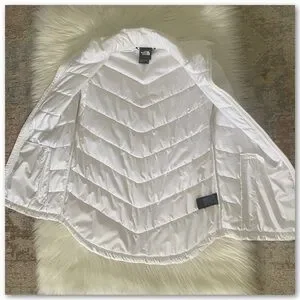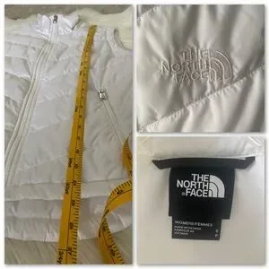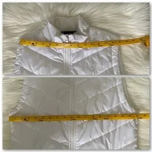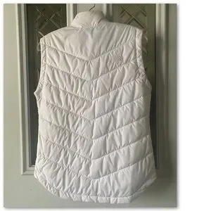 Lightweight and cozy North Face quilted vest in classic white. Perfect for layering without the bulk. Features a full zip front, zip pockets, stand collar, and embroidered logo on front and back. Excellent condition