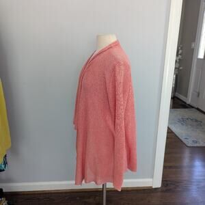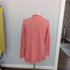 Women's Eileen Fisher Medium Linen Coral Salmon Waterfall Cardigan