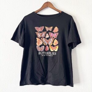 Black Butterfly Graphic Tee Butterflies in My Stomach Large