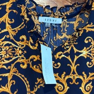 NWT Sioni Navy and Gold Patterned Blouse Equestrian inspired
