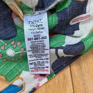 Absolutely groovy baby girl dress from NEXT UK! Great used condition, with some very light pen marks. Please review photos, I took a close up of each mark and a farther away picture to help you see where on the dress the marks are. Size 18-24 M or 1.5-2 year.