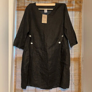 This hip black midi dress is perfect for any occasion. Its sleek design and comfortable fit make it a must-have in your wardrobe.