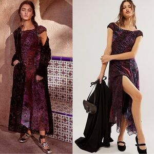 Free People Witchy Grunge Patchwork Asymmetrical Heart To Heart Midi Dress 0 XS