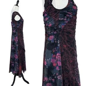 Goth WhimsiGoth Grunge Fall Winter High Slit Dark Plum Burgundy Asymmetrical Shark bite Handkerchief Fairy Flowers Floral Fit & Flare 90s Y2K Bohemian Gypsy Stevie Nicks Midi Maxi