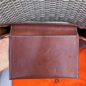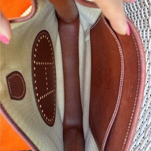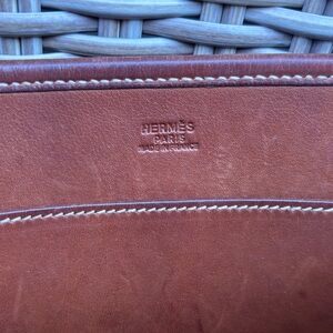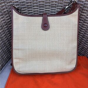 Authentic Hermes Toile Swift Evelyne PM leather brown crossbody bag