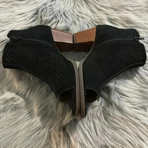 VIONIC Chryssa Peep Toe Booties Boots Black Suede Size 7 EUC Fall Shoes Comfy