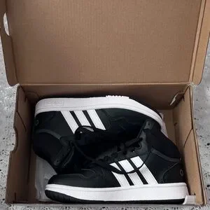 Adidas Hoops Mid 3.0 kids sneaker- black/ white boys size 2