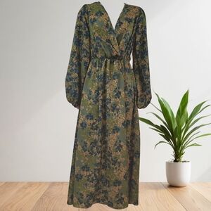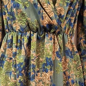 Shein Women's Green/Blue Floral Long Sleeve Elastic Waist Dress Size 4