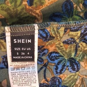 Shein Women's Green/Blue Floral Long Sleeve Elastic Waist Dress Size 4 , lightweight pre-owned great condition