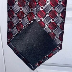 These ties feature a sophisticated geometric design in vibrant red and subtle gray tones, crafted from high-quality materials for a polished look. Perfect for adding a touch of elegance to any formal ensemble.