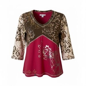 NWT Coldwater Creek top. Lots of stretch, foiled detail, embellished. Please don’t hesitate to ask me for any details on this piece!