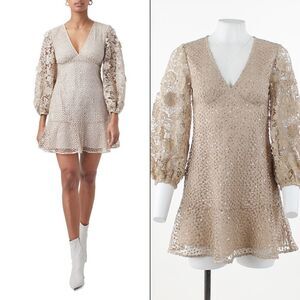 French Connection Caballo Sequined Lace Mini Dress Nude