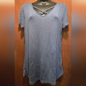This is a stylish short sleeve tee, that is gently tested with no defects. This cute top features a crisscross neckline and back bar detailing. Soft and comfortable, lightweight fabric. This cool top is versatile and super cool. The approximate unstretched measurements;