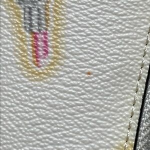 Chic Coach wallet with a fun lipstick pattern. Ideal for everyday style. In great condition! One tiny little spot on the back (see last picture) inside is in pristine condition.