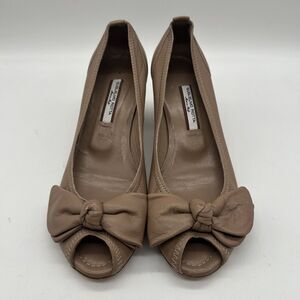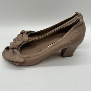 Elevate your shoe collection with these stunning GUGLIELMO ROTTA pumps, made with high-quality leather in Italy. The beautiful beige color, solid pattern, and peep toe design are perfect for any occasion. Slip-on style with a charming bow character, these heels have a low block heel of 1-1.9 inches, making them comfortable to wear all day long.