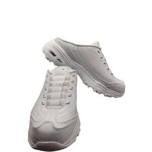 Skechers D'Lites sneakers in white. Memory foam and look brand new outside. Very good condition inside but has a couple small stains.