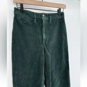 Madewell Slim Emmett Smoky Spruce Green Corduroy Crop Wide Leg Pants