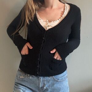dELIA*s Black Women's Button Up Cardigan. The cardigan is a size xs. Does have a little stretch.