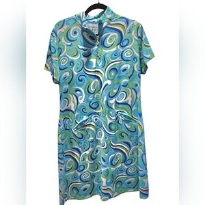 IBKUL Paisley Blue Sleeveless Dress w/Pockets Golf Pickleball Quarter Zip Sz XL
