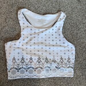Glyder Sports Bra Cropped Shirt. Metallic silver pattern. Shelf bra. Like new. S