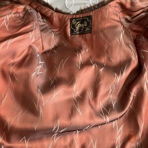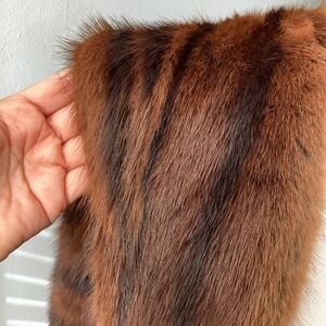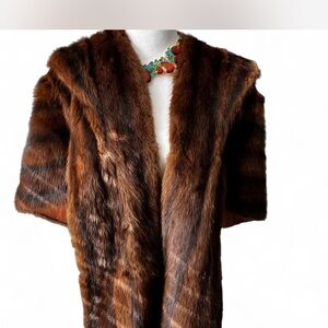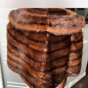 Very Elegant Chic brown it seems to me to be mink with black stripes shawl with a satin lining. Ideal for sophisticated events. Vintage Fur things I noticed small tear by the shoulders not noticeable when worn. Small stain in the inner lining. I will include video soon please ask for any more pictures to be added or any questions
