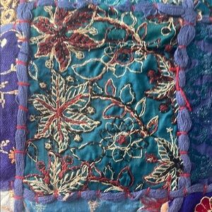 Enhance your home decor with this vibrant patchwork embroidered pillow case. Featuring a stunning mix of blue, purple, and gold, this set adds a touch of elegance to any room.