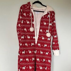 Abercrombie & Fitch Red Hooded Flece Onesie with Llama Print