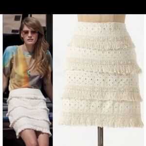 Anthropologie,Elegant Cream Linen Fringe Skirt,Size 10