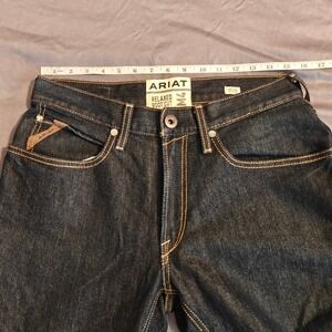 Keywords: Ariat Jeans, Mens Denim, Bootcut Fit, Relaxed Fit, Dark Wash, Western Wear, Workwear, Casual, Everyday, Cowboy Boots, Durable, Comfortable, Classic Style