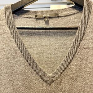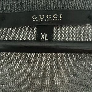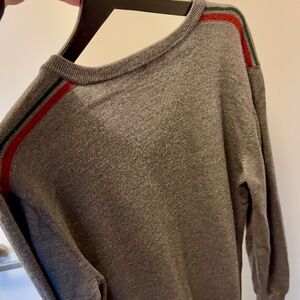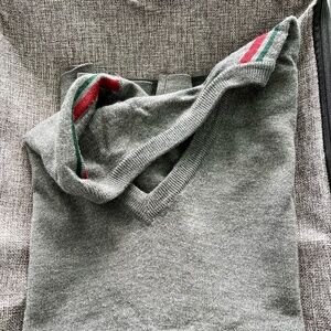 GUCCI 100% Wool Grey V-Neck Sweater w Signature Stripes - Made in Italy