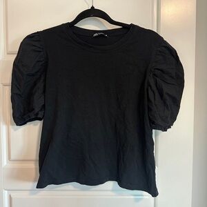 Zara Black Short Sleeve Puff Top
