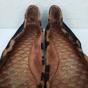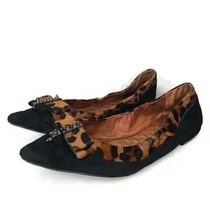 Stylish flats with a pointed toe. Features black and animal print design with decorative studs.