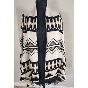 Altar'd State Women's Knit Open Front Cardigan Shawl Navy Cream Aztec Medium