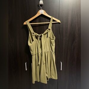 Stylish olive green jumpsuit. Features button front and adjustable straps. Women’s medium.