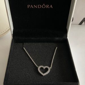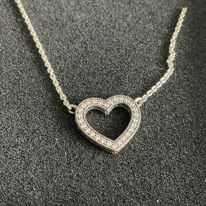 Chic Pandora necklace with a sparkling heart pendant. Ideal for any occasion. Chain is adjustable from 16” to 18”.