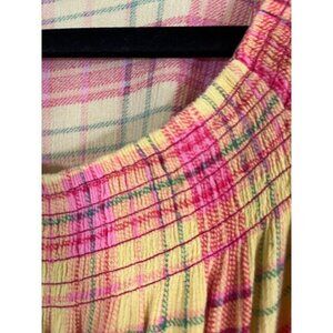 Torrid Top Milkmaid 1X Pink Plaid Smock Checks Preppy Feminine Boho Western