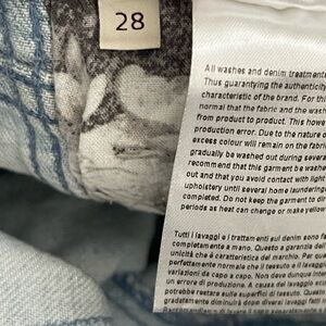 All measurements are approximate and taken to the nearest inch. If you need additional measurements, please let us know. Items shipped next business day The Stella McCartney Skinny Ankle Grazer Star Jeans in women's size 28 feature a stylish patchwork design with a zip closure and a slim fit. Made from a blend of elastane and cotton, these light-wash denim jeans have a low rise and a 27-inch inseam, perfect for a fashionable and comfortable look. The multicolor star theme adds a trendy touch to these ankle-grazer jeans, making them a versatile and chic addition to any wardrobe.