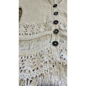 Boho Knit Cotton Open Cardigan Sweater Crochet Fringe Cottagecore Festival S/M