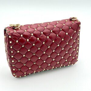 Valentino Garavani Rockstud Spike Red 2 Way Shoulder Bag Leather Handbag