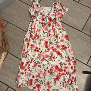 Gilli Spaghetti Strap Midi Dress Ruffle Detail Floral Details Adjustable Large