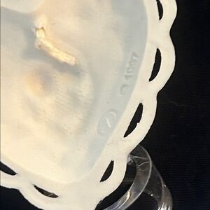 Vintage Margaret Furlong - From The Heart Ornament porcelain heart with original white ribbon. Includes lucite stand to display.