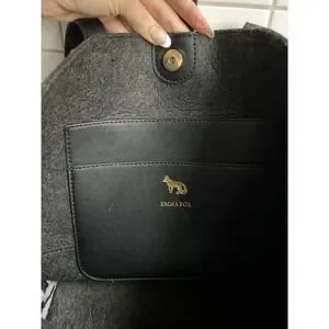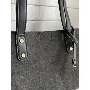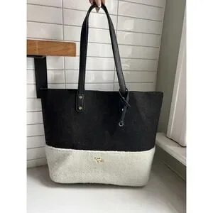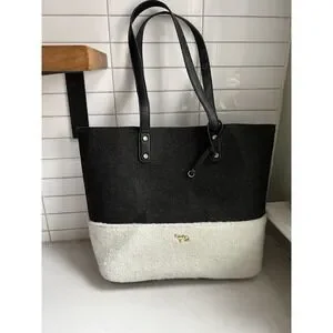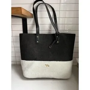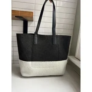 Emma Fox Caspian Shoulder Bag Tote Large Felt Sherpa Gray Cream Purse Trendy