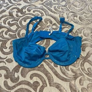 Cacique Teal Blue Underwire Lined Sequin Plunge Bra – Size 40D