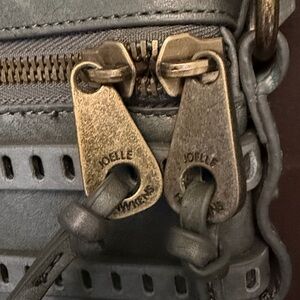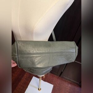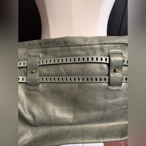 JOELLE HAWKENS Vntg Green Leather Bag Satchel Purse Studded Tassel Zips Hobo